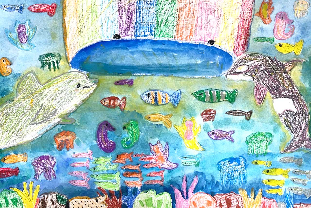 海の生き物が仲良く平和に暮らしている姿を書いてくれました。
