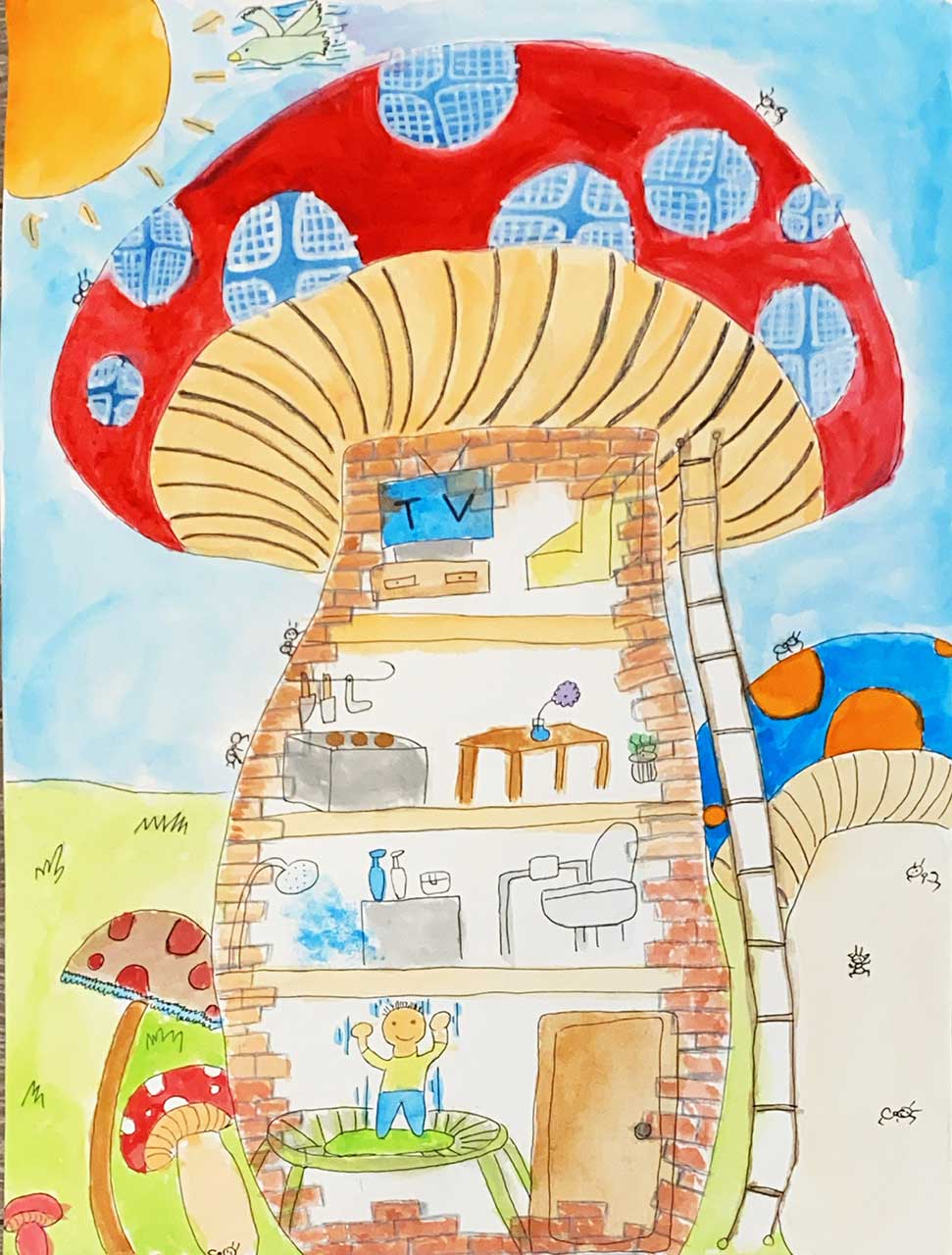 クリスマスツリーが大好きで、ツリーハウスに住んでみたいという想いで書いてくれました。